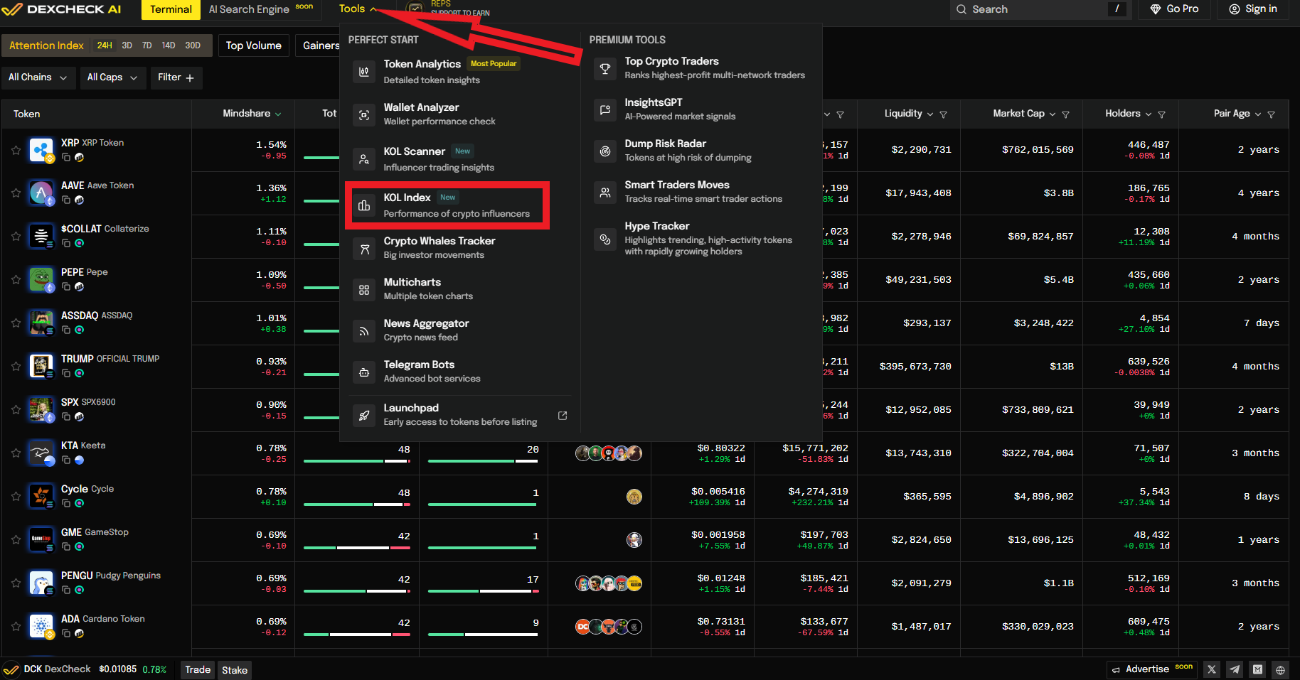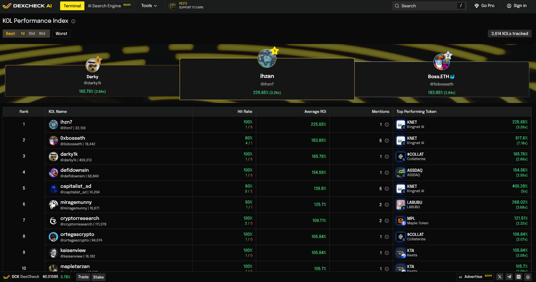 2. Scroll through the leaderboard to see ranking KOLs